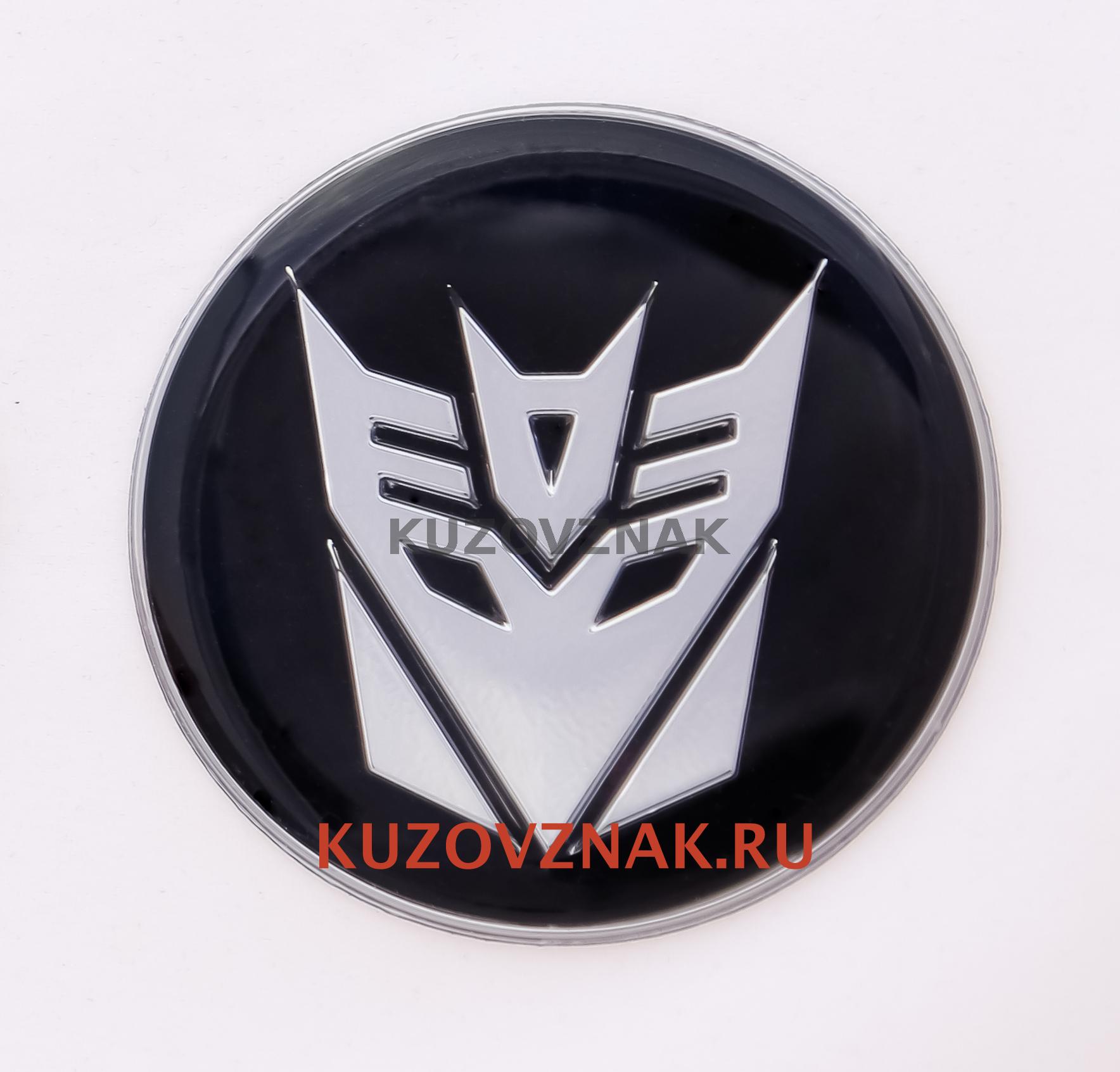 Эмблема трансформеров выполнена в цвете глянцевое серебро на белом фоне.